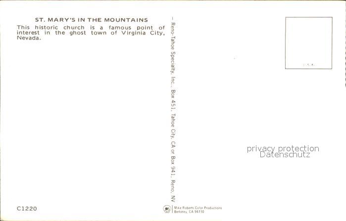 11688209 Virginia City Nevada St Marys in the Mountains historic church Ghost Town postalisch nicht gelaufen Erhaltung siehe scans KatCode: 14140300000000