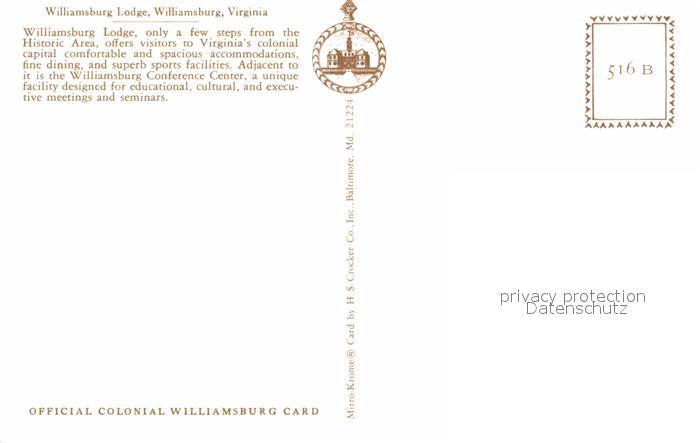 72759528 Virginia US-State Lodge Williamsburg postalisch nicht gelaufen Erhaltung siehe scans [LiesaD40] KatCode: 14140490000000