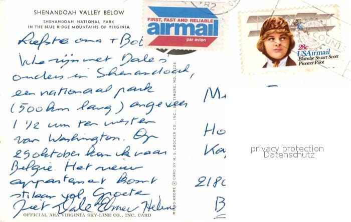 72897792 old postcard Virginia US-State Shenandoah Valley Below postalisch gelaufen Erhaltung siehe scans [FriedD77] KatCode: 14140490000000