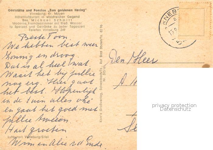 73672749 alte Postkarte Virneburg Gaststaette Zum goldenen Hering Schloss Fliegeraufnahme postalisch gelaufen Erhaltung siehe scans [WerneD78] KatCode: 11110007137105