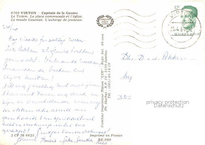 72908326 carte postale Virton Liege Capitale de la Gaume postalisch gelaufen Erhaltung siehe scans [LiesaD40] KatCode: 11070085000798