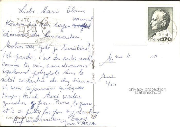 old postcard Vis Jugoslawien Yugoslavie Fliegeraufnahme Fischerboote postalisch gelaufen Erhaltung siehe scans