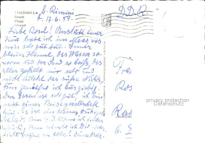 old postcard Viserbella di Rimini Spiaggia postalisch gelaufen Erhaltung siehe scans