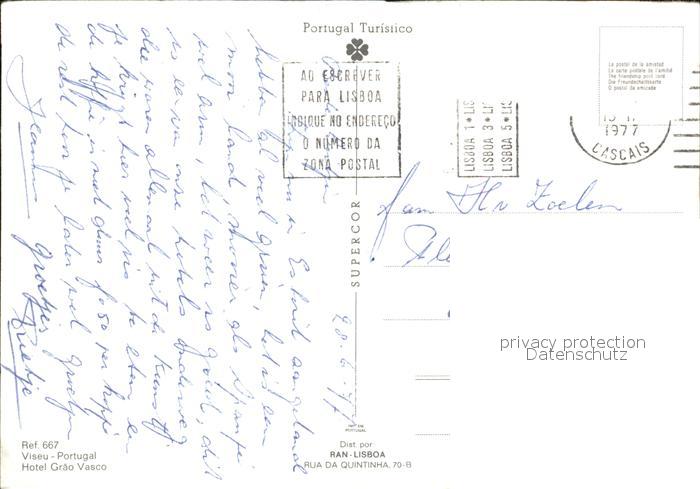 old postcard Viseu Hotel Grao Vasco postalisch gelaufen Erhaltung siehe scans [LiesaD40]