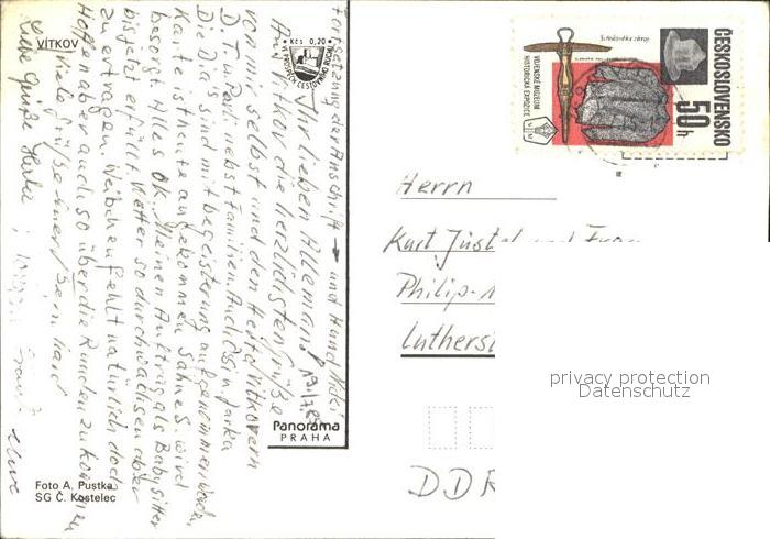 old postcard Vitkov Gesamtansicht Denkmal Gebaeude postalisch gelaufen Erhaltung siehe scans
