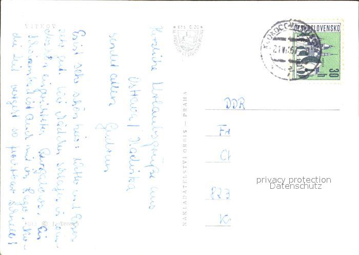 old postcard Vitkov Stadtblick mit Kirche postalisch gelaufen Erhaltung siehe scans