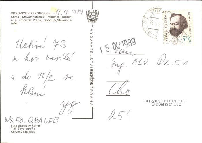 old postcard Vitkovice Chata Stavomontaznik Krkonose Riesengebirge postalisch gelaufen Erhaltung siehe scans