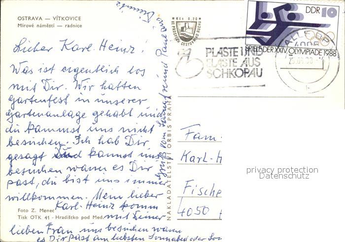 old postcard Vitkovice Mirove namesti radnice postalisch gelaufen Erhaltung siehe scans