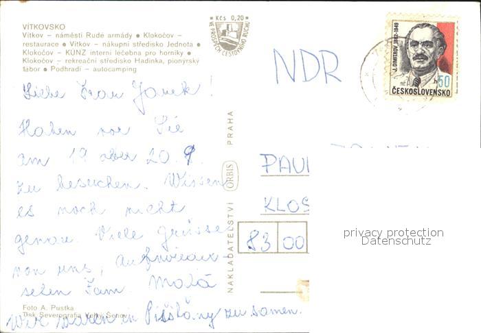 old postcard Vitkovsko Rude armady Klokocov restaurace Jednota Klokocov Kunz Hadinka Podhradi autocamping postalisch gelaufen Erhaltung siehe scans