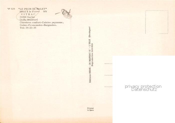 13814793 Vitrac 24 Dordogne Le Pech de Malet Chambres confort Cuisinepaysanne Calme Promenades Baignades postalisch nicht gelaufen Erhaltung siehe scans [WerneD78] Wern Katcode 11170024424587