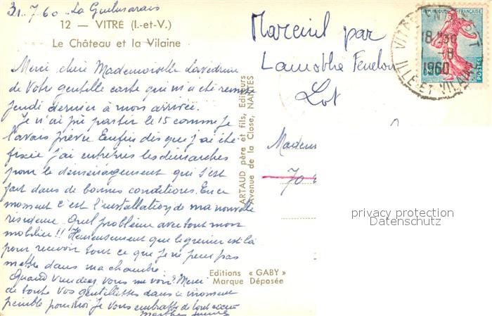 13535293 carte postale Vitre d Ille-et-Vilaine Chateau et la Vilaine postalisch gelaufen Erhaltung siehe scans [FriedD77] KatCode: 11170035335360