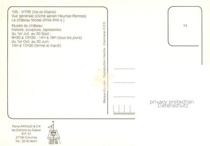 13236916 Vitre d Ille-et-Vilaine Fliegeraufnahme Museumsschloss postalisch nicht gelaufen Erhaltung siehe scans [KathaD81] KatCode: 11170035335360