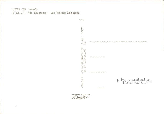12501352 Vitre d Ille-et-Vilaine Rue Baudrairie Les Vieilles Demeures postalisch nicht gelaufen Erhaltung siehe scans KatCode: 11170035335360