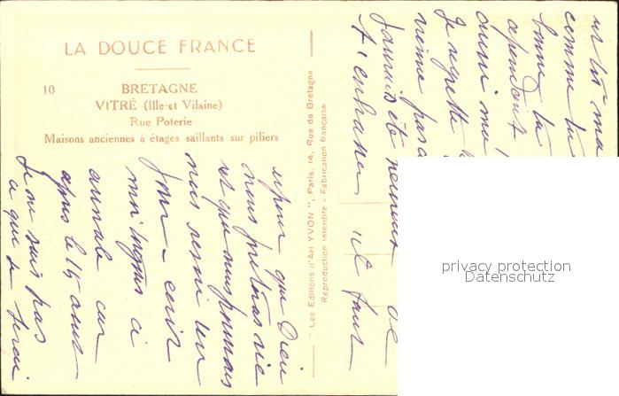 11901447 Vitre d Ille-et-Vilaine Rue Poterie postalisch nicht gelaufen Erhaltung siehe scans KatCode: 11170035335360