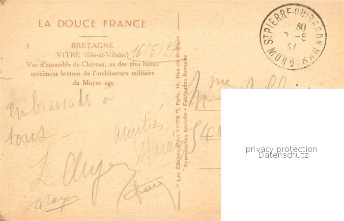 13621570 Vitre d Ille-et-Vilaine Vue d’ensemble du Chateau un des plus beau speciemens bretons de l’architecture militaire du Moyen age postalisch gelaufen Erhaltung siehe scans [WerneD78] carte postale Wern Katcode 11170035335360