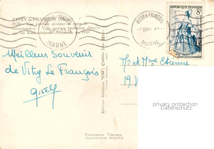 13833275 Vitry-le-Francois 51 Marne Vue aérienne postalisch gelaufen Erhaltung siehe scans [FriedD77] carte postale Frie Katcode 11170051451649