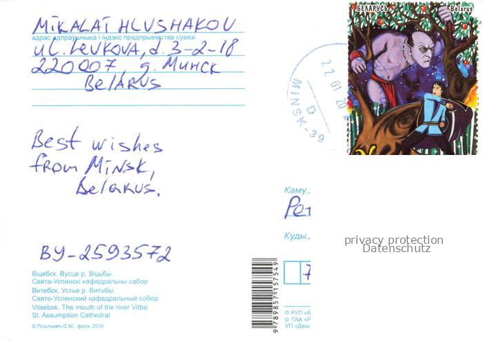 74040300 old postcard Vitsebsk Wizebsk Witebsk Belarus Vitba St. Assumption Cathedrale postalisch gelaufen Erhaltung siehe scans [IrynaD87] KatCode: 11060