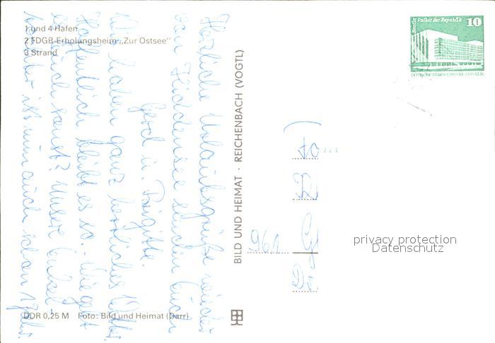 72343422 alte Postkarte Vitte Hafen FDGB Erholungsheim Zur Ostsee Strand Faehre postalisch gelaufen Erhaltung siehe scans KatCode: 11110013061017