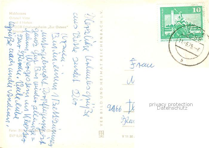 73035722 alte Postkarte Vitte Hiddensee Hafen FDGB Erholungsheim Zur Ostsee Strand postalisch gelaufen Erhaltung siehe scans [KathaD81] KatCode: 11110013061017