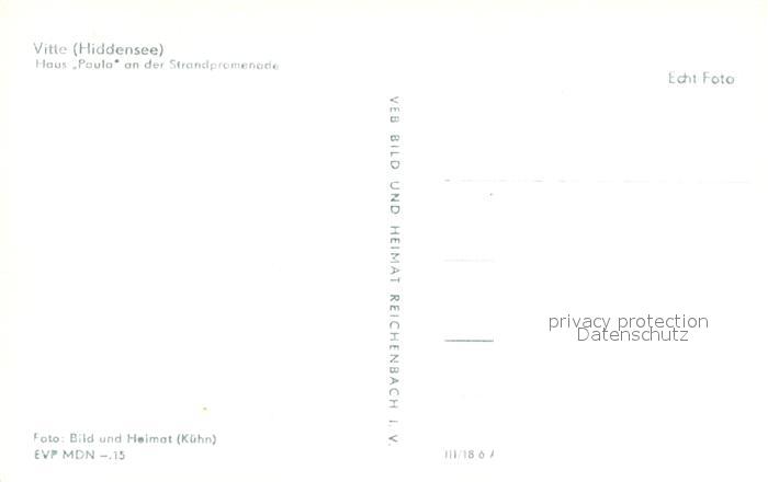 72966602 Vitte Hiddensee Haus Paula an der Strandpromenade Reetdachhaus postalisch nicht gelaufen Erhaltung siehe scans [FriedD77] KatCode: 11110013061017