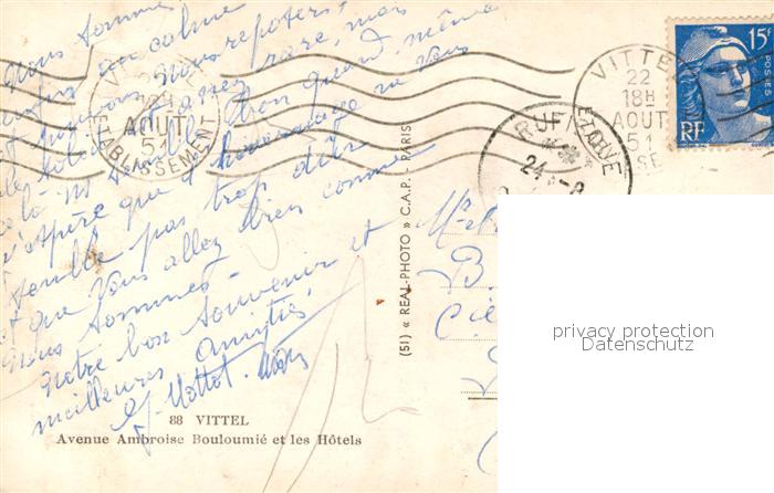 13530920 carte postale Vittel Avenue Ambroise Bouloumiè et les Hótels postalisch gelaufen Erhaltung siehe scans [FriedD77] KatCode: 11170088288516