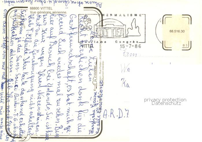 13165312 carte postale Vittel Fliegeraufnahme Bahnhof postalisch gelaufen Erhaltung siehe scans [KathaD81] KatCode: 11170088288516
