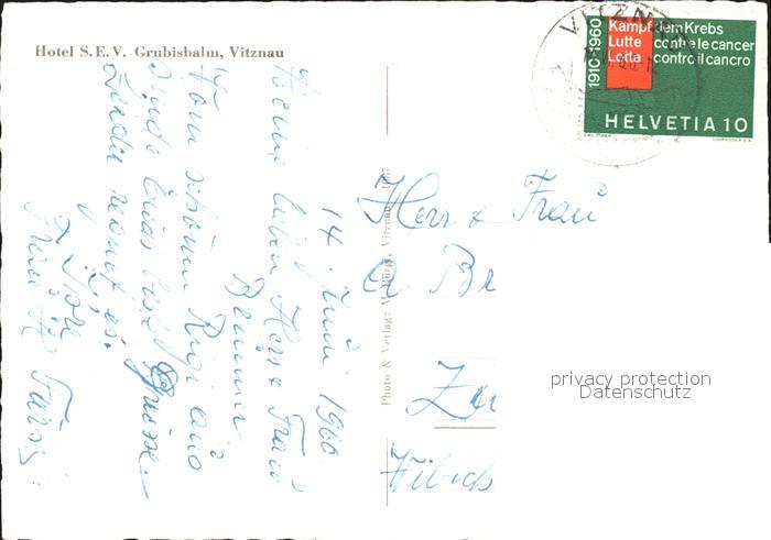 11649027 alte Postkarte Vitznau Hotel Grubisbalm postalisch gelaufen Erhaltung siehe scans KatCode: 11470120385892