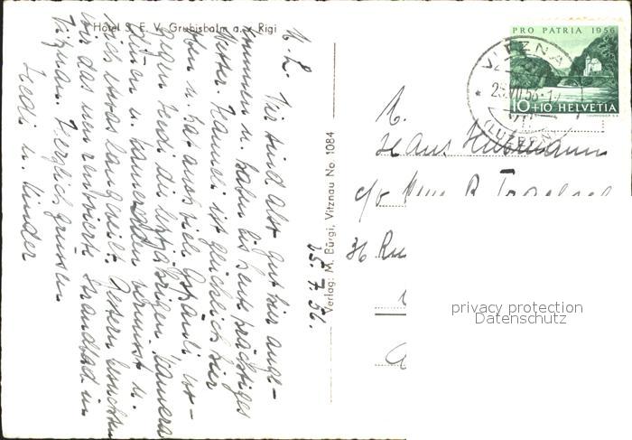 11648460 alte Postkarte Vitznau Hotel SEV Grubisbalm postalisch gelaufen Erhaltung siehe scans KatCode: 11470120385892