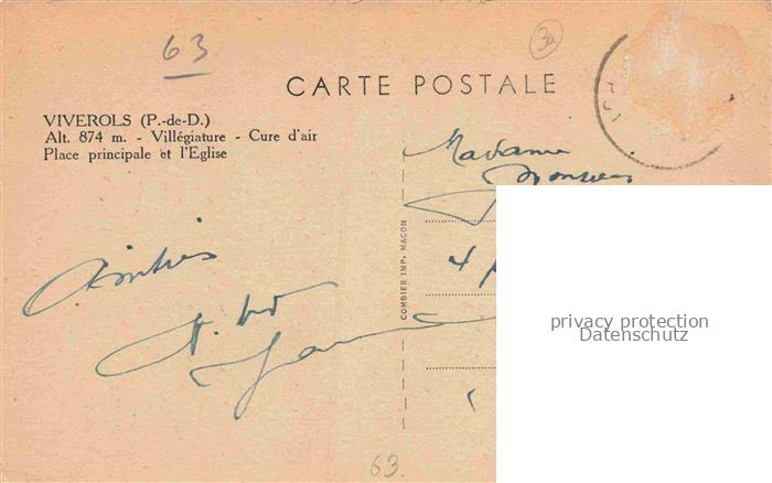 14105754 Viverols AMBERT 63 Puy-de-Dome Villégiature Cure d’air Place Principale et l’église postalisch gelaufen Erhaltung siehe scans [FriedD77] carte postale Frie Katcode 11170063163465