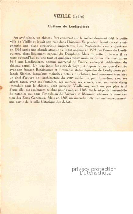 12754790 Vizille Chateau de Lesdiguieres 5e Serie Histoire postalisch nicht gelaufen Erhaltung siehe scans [FriedD77] KatCode: 11170038138562