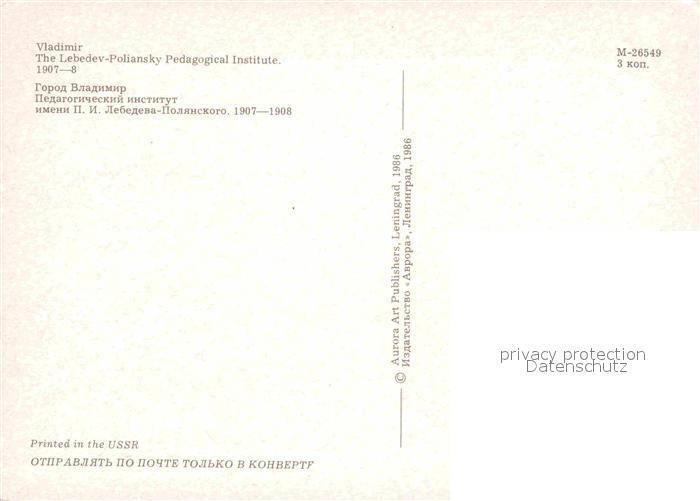 Vladimir Russland Lebedev-Poliansky Pedagogical Institute postalisch nicht gelaufen Keine Postkarte (siehe scan) Erhaltung siehe scans [NatalD47]