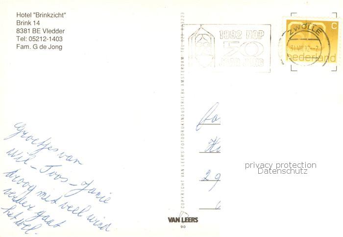 old postcard Vledder NL Hotel Brinkzicht Restaurant postalisch gelaufen Erhaltung siehe scans [FriedD77]