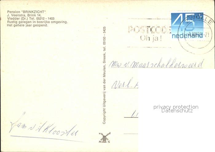 old postcard Vledder Pension Brinkzicht postalisch gelaufen Erhaltung siehe scans