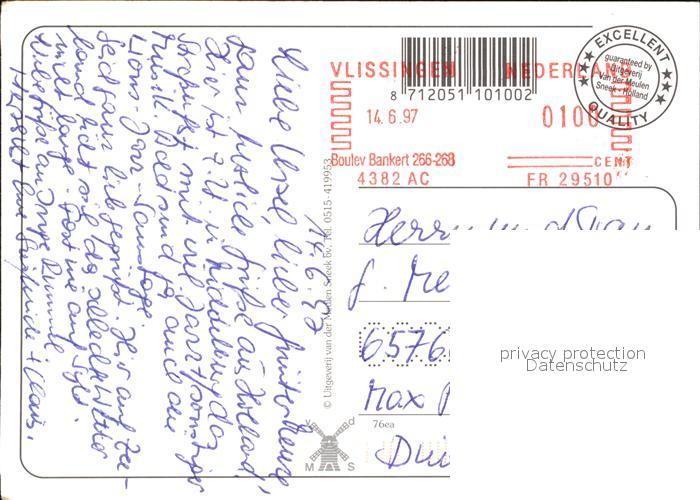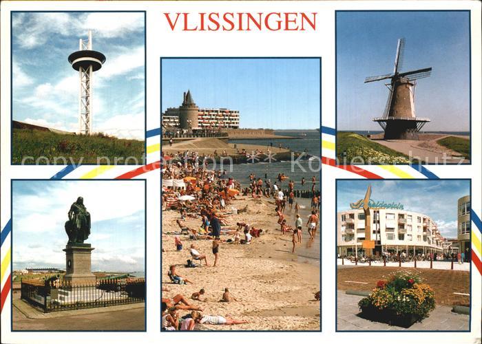 old postcard Vlissingen Strand Denkmal Windmuehle postalisch gelaufen Erhaltung siehe scans [NatalD47 kv014box]