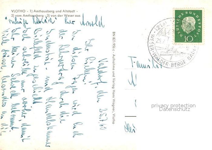 73008340 alte Postkarte Vlotho Amtshausberg Altstadt Blick von der Weser postalisch gelaufen Erhaltung siehe scans [WerneD78] KatCode: 11110005758036