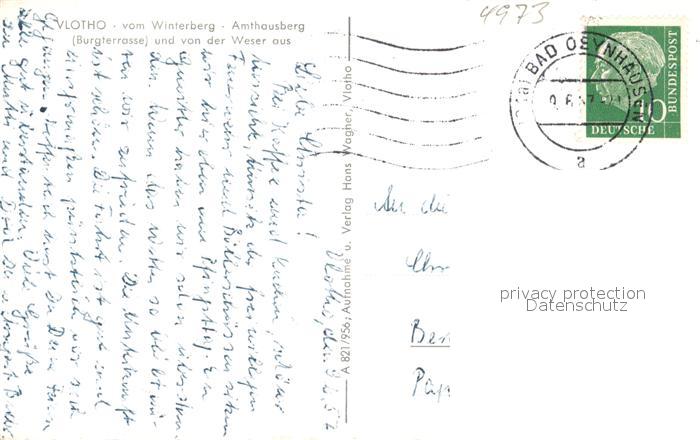 43494822 alte Postkarte Vlotho Amtshausberg Weserpartie Burgterrasse postalisch gelaufen Erhaltung siehe scans [WerneD78] KatCode: 11110005758036