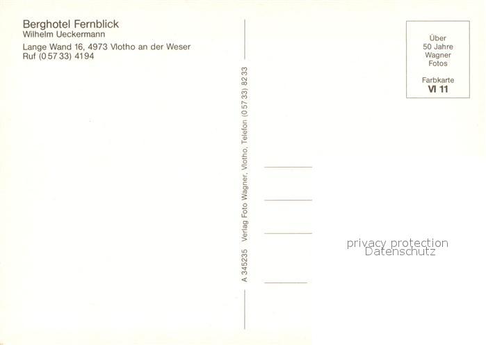 73678910 Vlotho Berghotel Fernblick Restaurant postalisch nicht gelaufen Erhaltung siehe scans [FriedD77] KatCode: 11110005758036