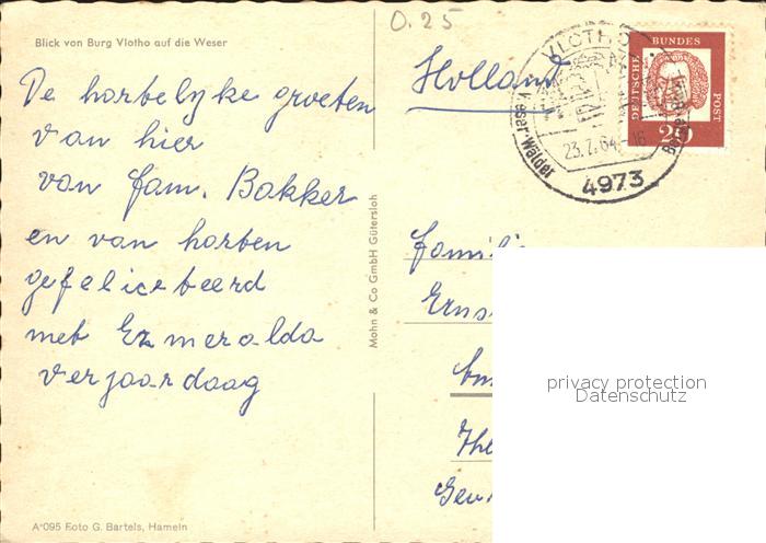 72274531 alte Postkarte Vlotho Blick vom Burg postalisch gelaufen Erhaltung siehe scans KatCode: 11110005758036
