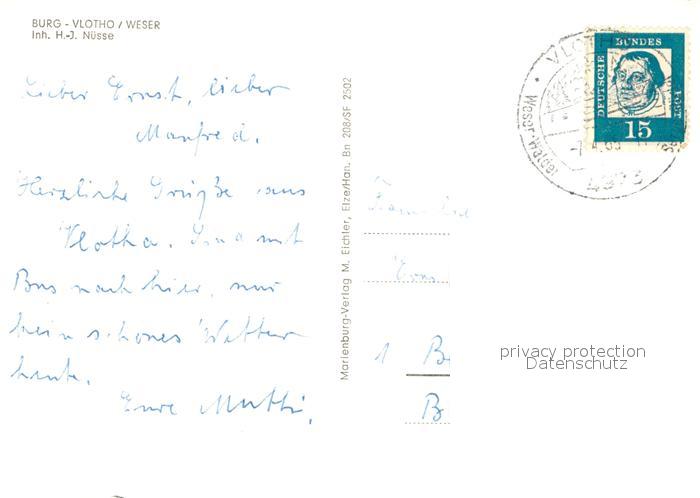73669295 alte Postkarte Vlotho Burg Vlotho Fliegeraufnahme Panorama Terrasse postalisch gelaufen Erhaltung siehe scans [WerneD78] KatCode: 11110005758036