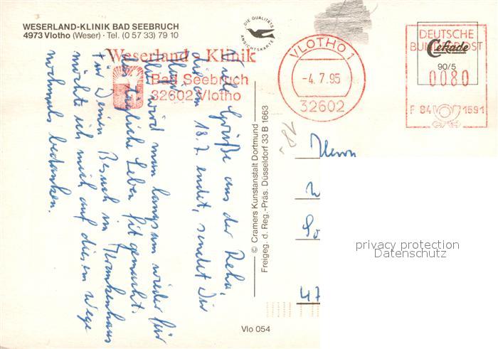 72943042 alte Postkarte Vlotho Fliegeraufnahme Weserland Klinik Bad Seebruch postalisch gelaufen Erhaltung siehe scans [KathaD81] KatCode: 11110005758036