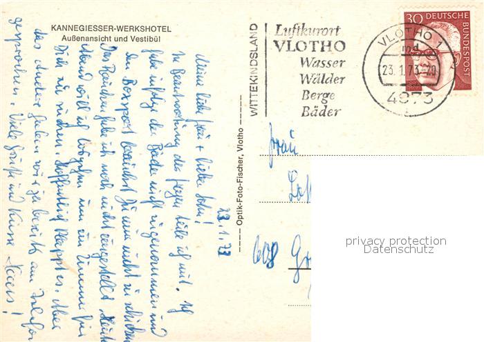 73110900 alte Postkarte Vlotho Kannegiesser-Werkshotel postalisch gelaufen Erhaltung siehe scans [NatalD47] KatCode: 11110005758036