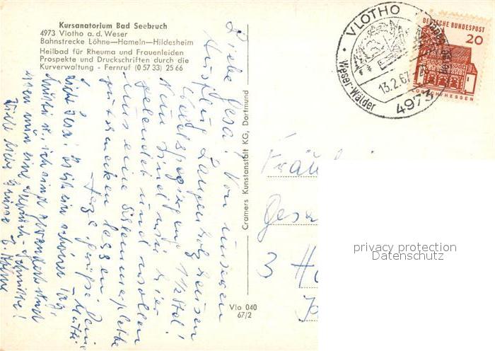 73095801 alte Postkarte Vlotho Kursanatorium Bad Seebruch postalisch gelaufen Erhaltung siehe scans [NatalD47] KatCode: 11110005758036