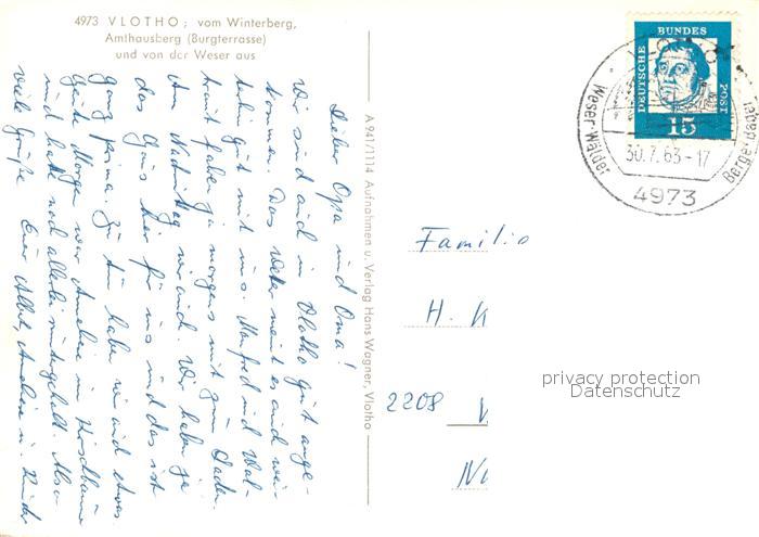 73135107 alte Postkarte Vlotho mit Amthausberg Burgterrasse Weserpartie postalisch gelaufen Erhaltung siehe scans [FriedD77] KatCode: 11110005758036