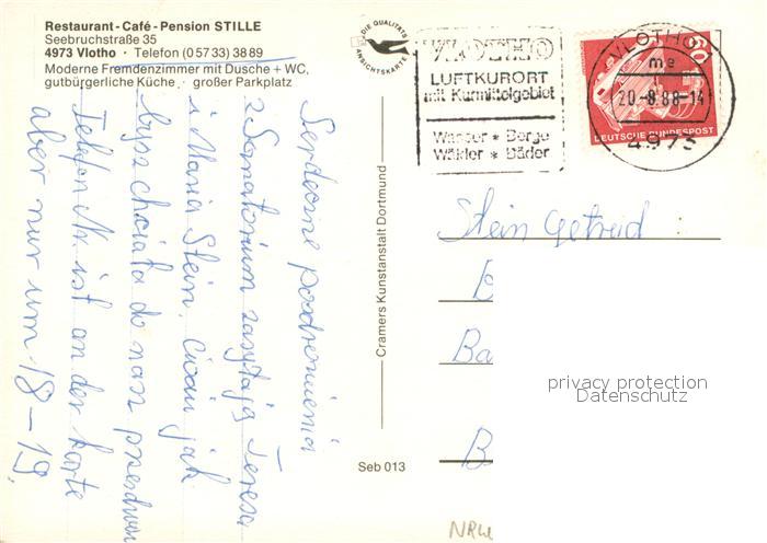 73646088 alte Postkarte Vlotho Restaurant Cafe Pension Stille postalisch gelaufen Erhaltung siehe scans [WerneD78] KatCode: 11110005758036