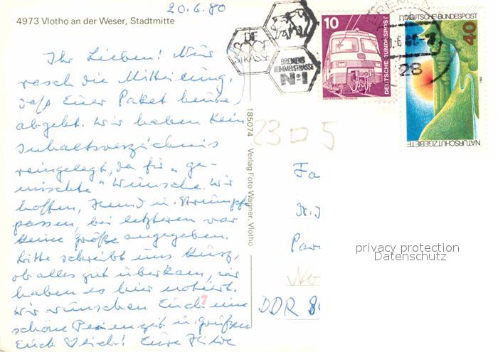 72689714 alte Postkarte Vlotho Stadtmitte Motiv postalisch gelaufen Erhaltung siehe scans [WerneD78] KatCode: 11110005758036