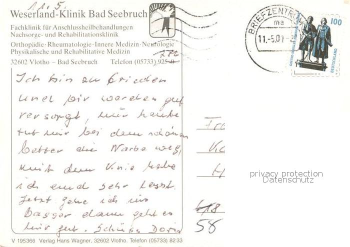73717691 alte Postkarte Vlotho Weserland Klinik Bad Seebruch Fliegeraufnahme postalisch gelaufen Erhaltung siehe scans [WerneD78] KatCode: 11110005758036