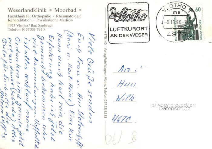 72966770 alte Postkarte Vlotho Weserlandklinik Moorbad Schwimmbad postalisch gelaufen Erhaltung siehe scans [LiesaD40] KatCode: 11110005758036