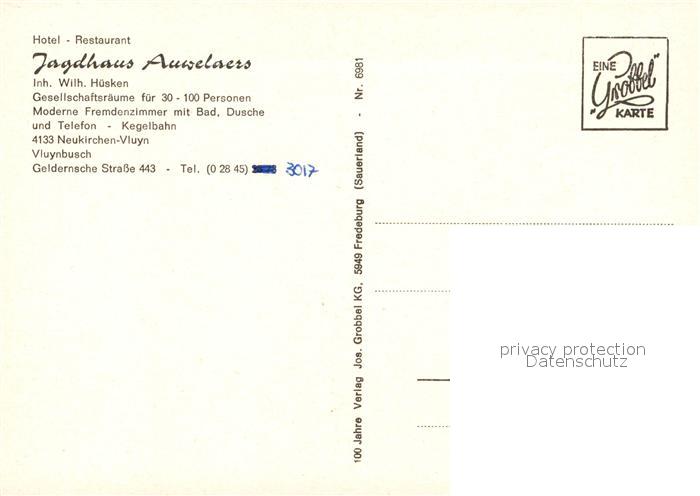 73086657 Vluyn Hotel Jagdhaus Auwelauers postalisch nicht gelaufen Erhaltung siehe scans [NatalD47] KatCode: 11110005170028