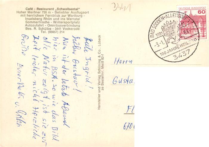 73944382 alte Postkarte Vockerode Eschwege Café Restaurant Schwalbental Hoher Meissner Winterpanorama postalisch gelaufen Erhaltung siehe scans [FriedD77] KatCode: 11110006636008