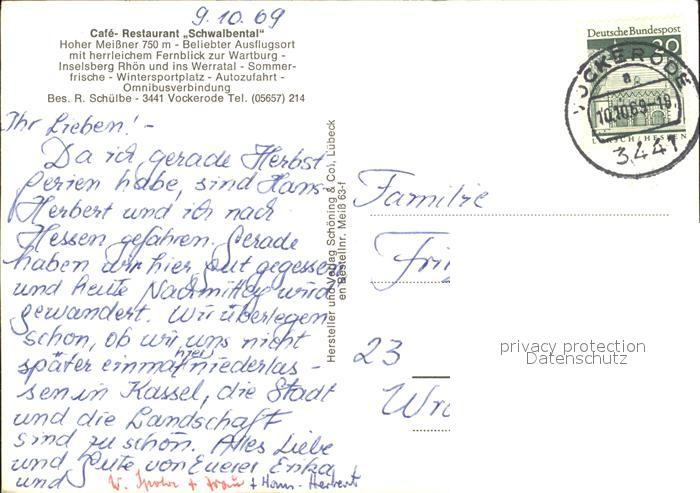72289814 alte Postkarte Vockerode Eschwege Hoher Meissner Cafe Restaurant Schwalbental postalisch gelaufen Erhaltung siehe scans KatCode: 11110006636008